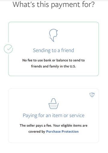- When selecting what the payment is for you will need to select ‘Sending to a friend’ or the association will be changed a fee. (see example below)